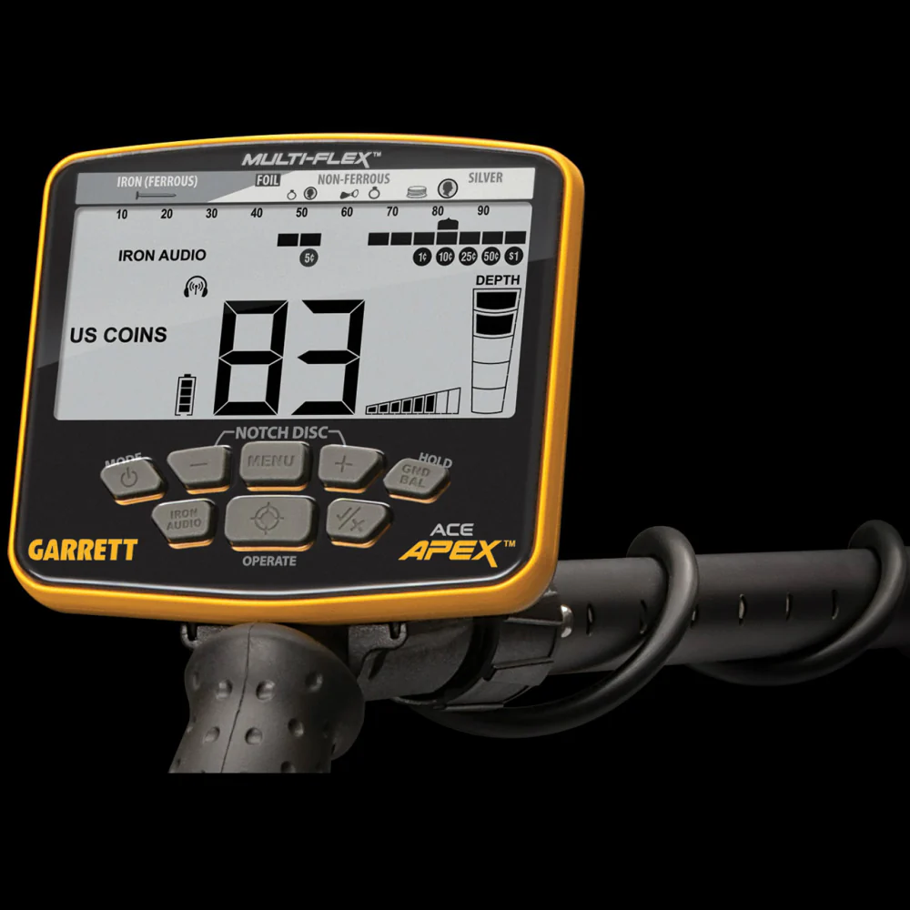 Garrett’s Multi-Flex technology, fueled by a cutting edge, broad-bandwidth digital platform, simply gives you more versatility with the Apex than can be found on any detector in its price range!